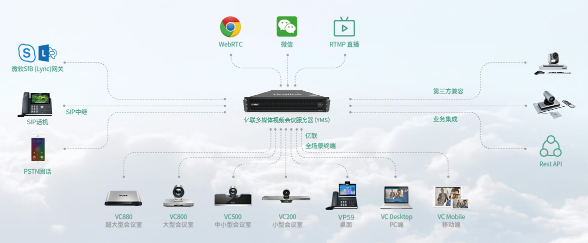 億聯(lián)多媒體視頻會議服務(wù)器(Yealink Meeting Server)是一款多功能視頻會議服務(wù)器,集成了MCU、注冊、穿透、會議管理、設(shè)備管理、企業(yè)地址簿、SIP中繼、WebRTC、GK & H.460和和白板協(xié)作服務(wù)等多個服務(wù)模塊于一體,為企業(yè)提高會議效率、節(jié)省資金與人力成本。