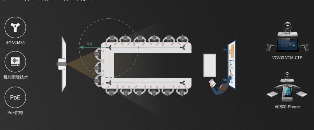 ? VC800-VCM-CTP版本:支持360°全向拾音,6米拾音半徑,支持PoE供電,可級聯(lián)4個麥克風(fēng),有效擴(kuò)大拾音范圍,可選配億聯(lián)新推出的條形音響,獲得聲音體驗